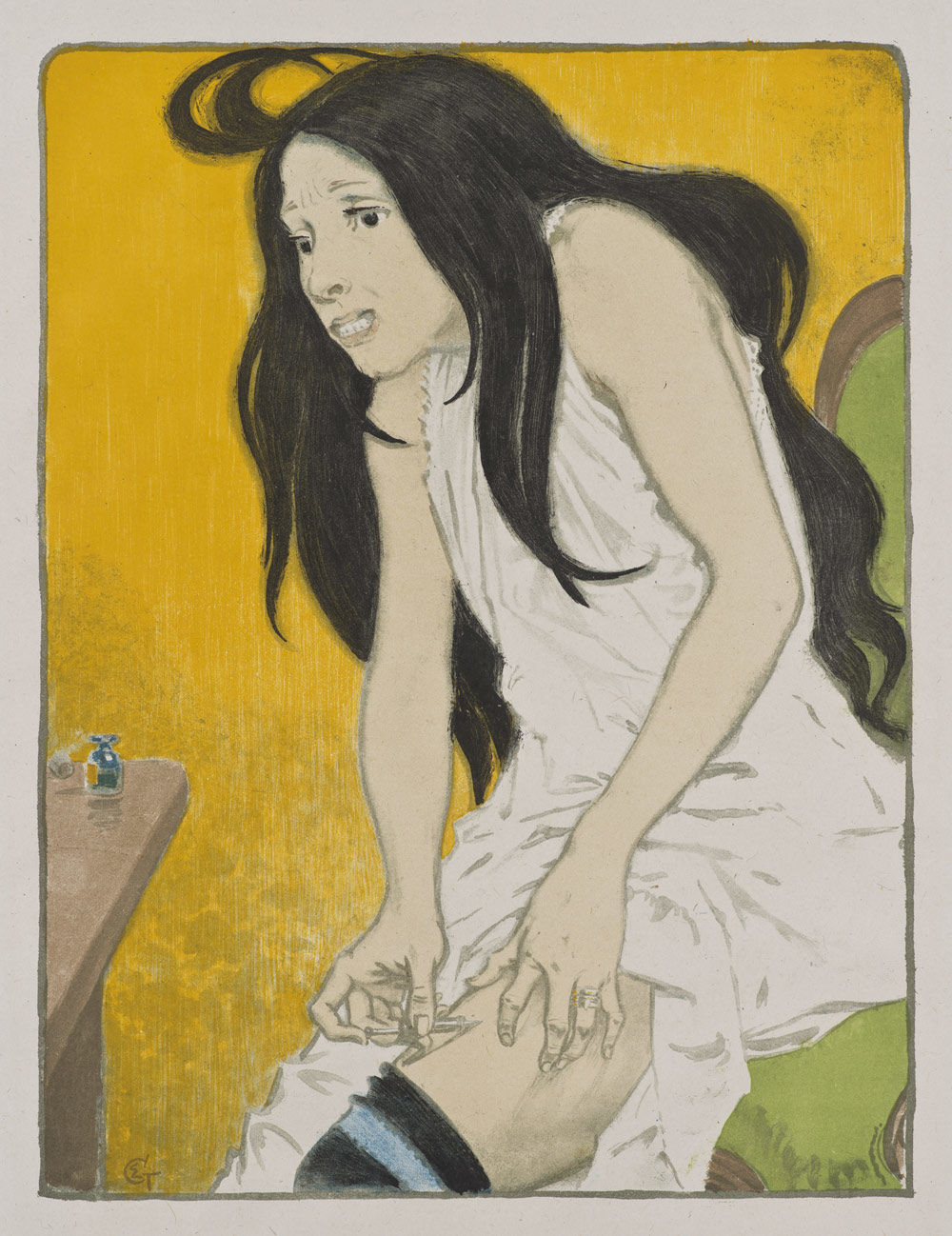 Just as troubling was the Morphinomane, 1897 [Morphine Addict] which features a young woman in a rumpled chemise – perhaps inferring that she is a prostitute - injecting herself with the drug; an ampule sits on the table.