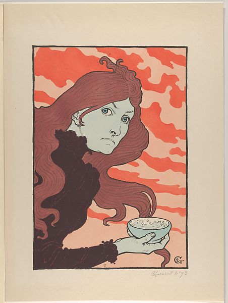 Born in Switzerland in 1850, Eugène Grasset studied and practiced many art forms—from painting to architecture, theatre decoration, textiles, children’s stories, wallpaper, furniture, lighting, book covers, and lithography. He was a devotee of the British Arts and Crafts movement, which embraced all forms of making as art in its own right. The black outlines in his drawings and posters are reminiscent of stained-glass windows, and sweeping, simple gowns worn by women in his works hearken back to the British Pre-Raphaelite painters. How he was moved to develop these images of women in various unflattering poses points to the time he lived in as a man and as an artist, when women were beginning to contest for their own space in the world.