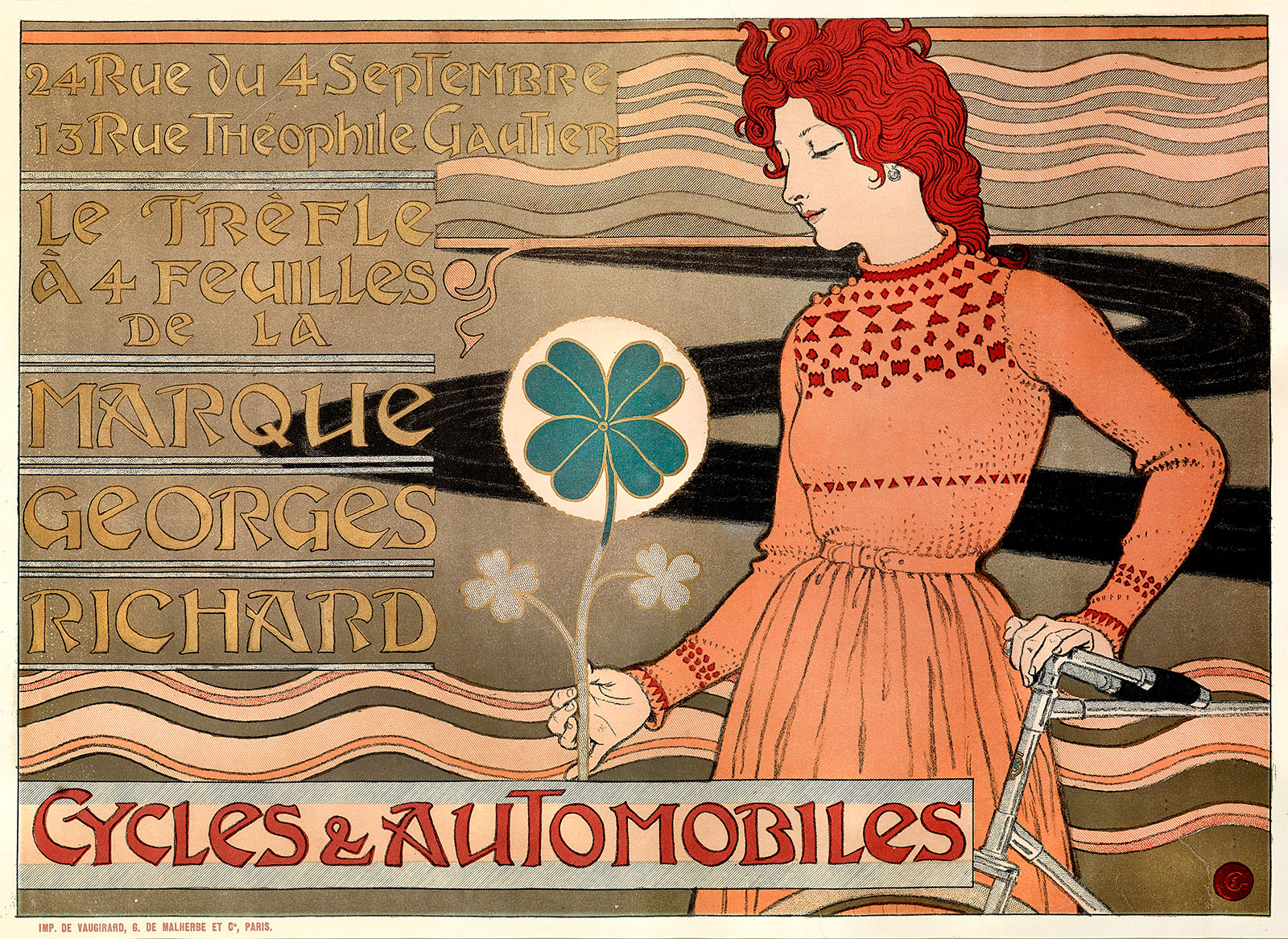 While we don’t know what Grasset thought of women, it is clear that his early posters of the early 1890s, such as the one on the left, depict them in a virginal manner, pensive and delicate.